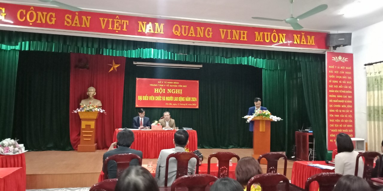 Ngày 11/01/2024, Công đoàn cơ sở phối hợp với Lãnh đạo Trung tâm Y tế huyện Yên Mô tổ chức Hội nghị viên chức, người lao động năm 2024. Tham dự Hội nghị có các đồng chí Lãnh đạo Đảng ủy, Ban giám đốc, Công đoàn cơ sở cùng toàn thể viên chức, người lao động đang làm việc tại Trung tâm Y tế huyện và đại diện Trạm Y tế các xã, thị trấn.