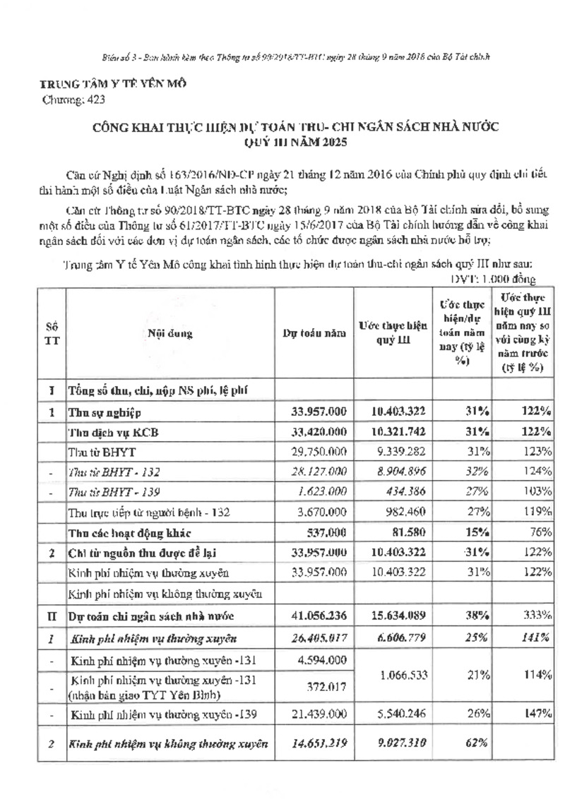 | Tiêu đề văn bản | CÔNG KHAI THỰC HIỆN DỰ TOÁN THU - CHI NGÂN SÁCH NHÀ NƯỚC QUÝ III NĂM 2025 | ||