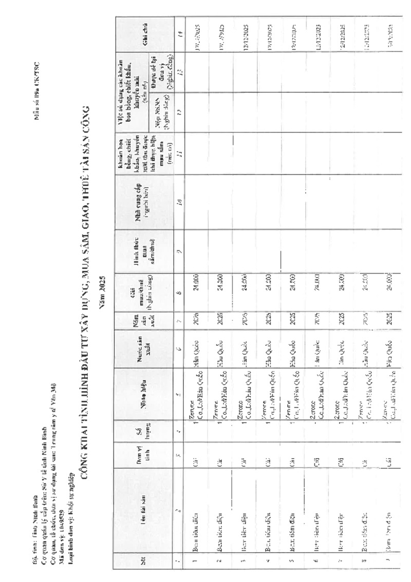 | 1 | CÔNG KHAI TÌNH HÌNH ĐẦU TƯ XÂY DỰNG, MUA SẮM, GIAO, THUÊ TÀI SẢN CÔNG NĂM 2025 | Mẫu số 09a-CK/TSC | 03/01/2025 | ||